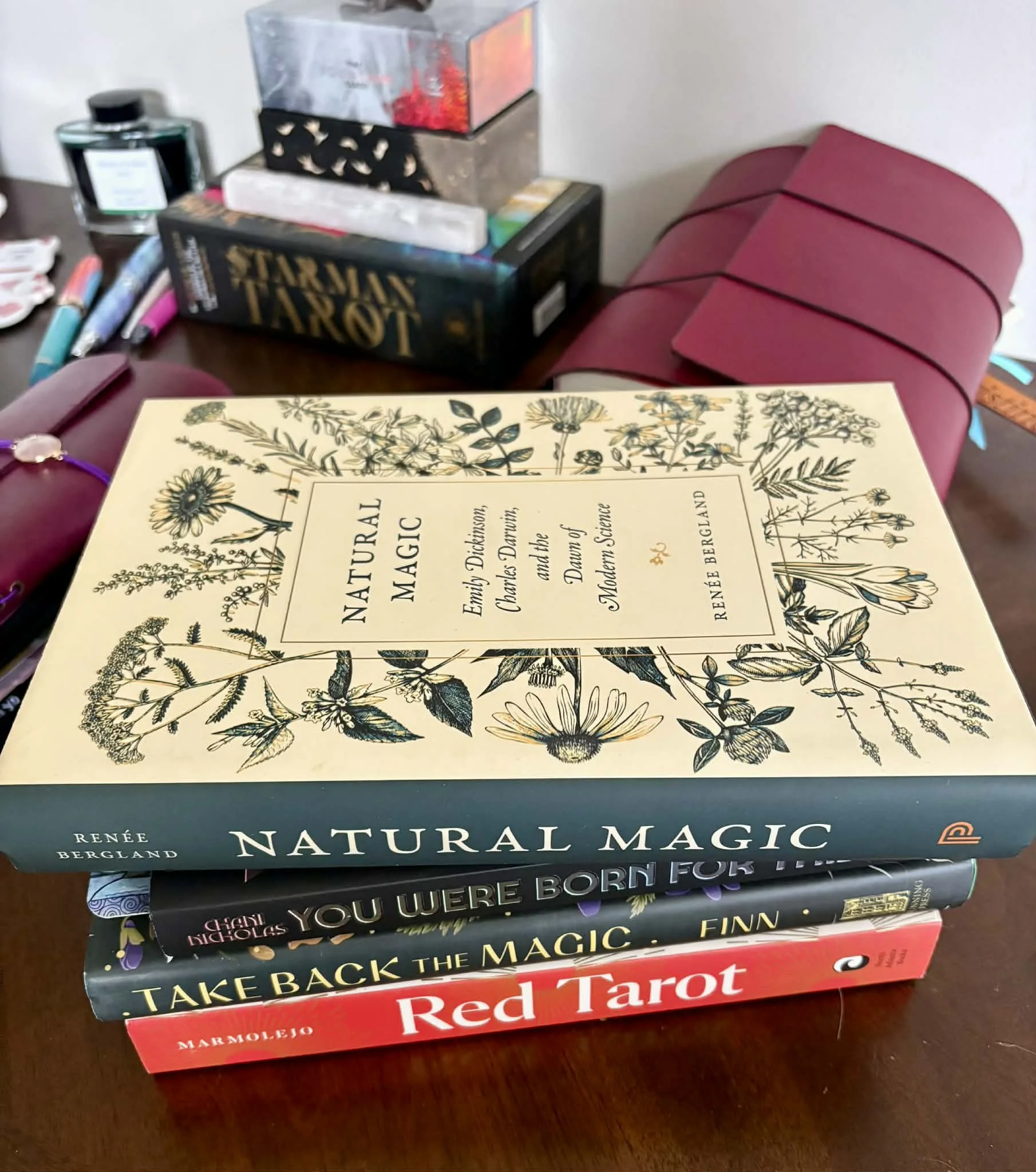 Your course can have books, articles, movies. Whatever you want. You’re the professor here and the student. My course is the stack of books in the photo but I’m still developing it so that might change. (Or I should say, one of my courses.)